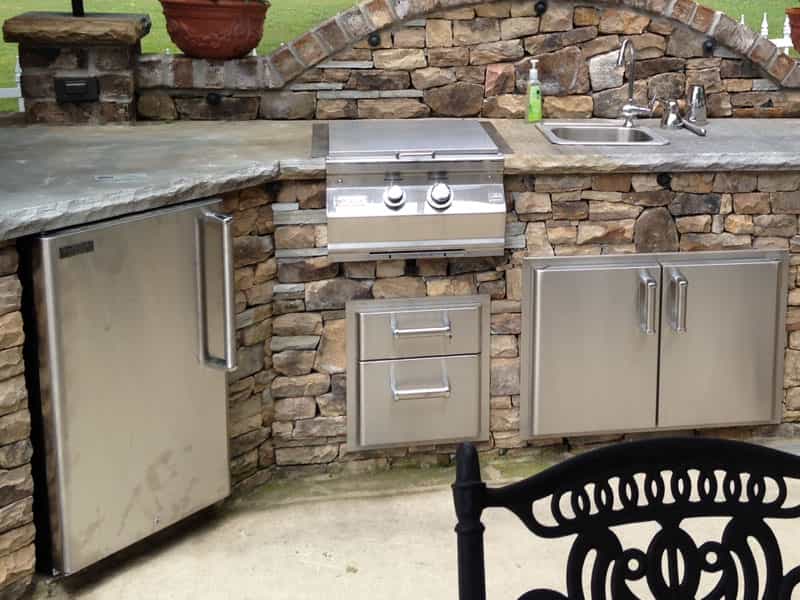 When deciding on the configuration of your outdoor kitchen self-sufficiency should be your goal as well as durability. Outdoor sinks and refrigerators will be your best solution to consider.