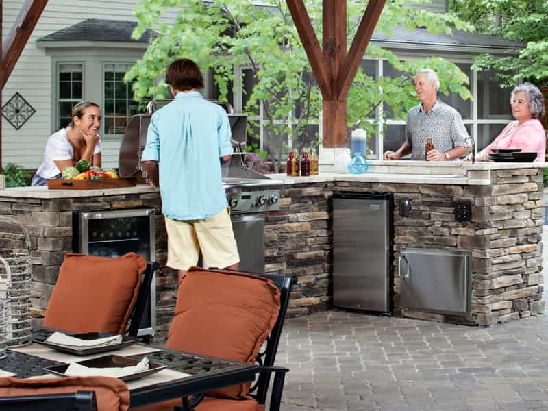 Let our professional outdoor kitchen designers answer any questions you may have concerning adding a sink or refrigerator to your outdoor spaces.
